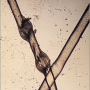 Pod mikroskopom môže byť vidieť, že na uzlíkoch sa nenachádza kutikula, zatiaľ čo na zúženiach áno. Krehké vlasy sa ľahko zlomia a následkom toho len zriedka dorastú do veľkej dĺžky. Vlasy sa lámu v mieste zúženín. Monilethrix sa najčastejšie vyskytuje v detstve, ale môže sa rozvinúť aj u mladých ľudí. Je to geneticky dedičné ochorenie hoci rôzni rodinní príslušníci ním môžu trpieť do rôznej miery. [2] Závažnosť monilethrixu sa tiež môže zmeniť v závislosti od ročného obdobia. Toto ochorenie sa často zhorší v zime a zlepší v lete. Monilethrix sa môže zlepšiť aj samo od seba, hoci mnoho ľudí ním trpí po celý svoj život.