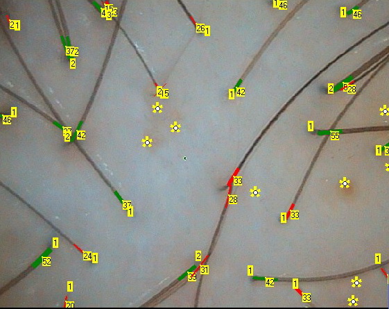 Meranie priemeru vlasov a následné vyhodnotenie môže byť vykonané pod väčším zväčšením, čo umožňuje väčšiu presnosť pri získavaní dát. Meranie môže byť vykonané v poloautomatickom alebo manuálnom režime. Správne posúdenie stavu pokožky hlavy umožňuje detekovať zmeny v perifolikulárnej zóne, ktoré treba zohľadniť pri výbere liečby pre pacientov s alopéciou a / alebo príznakmi dermatózy.